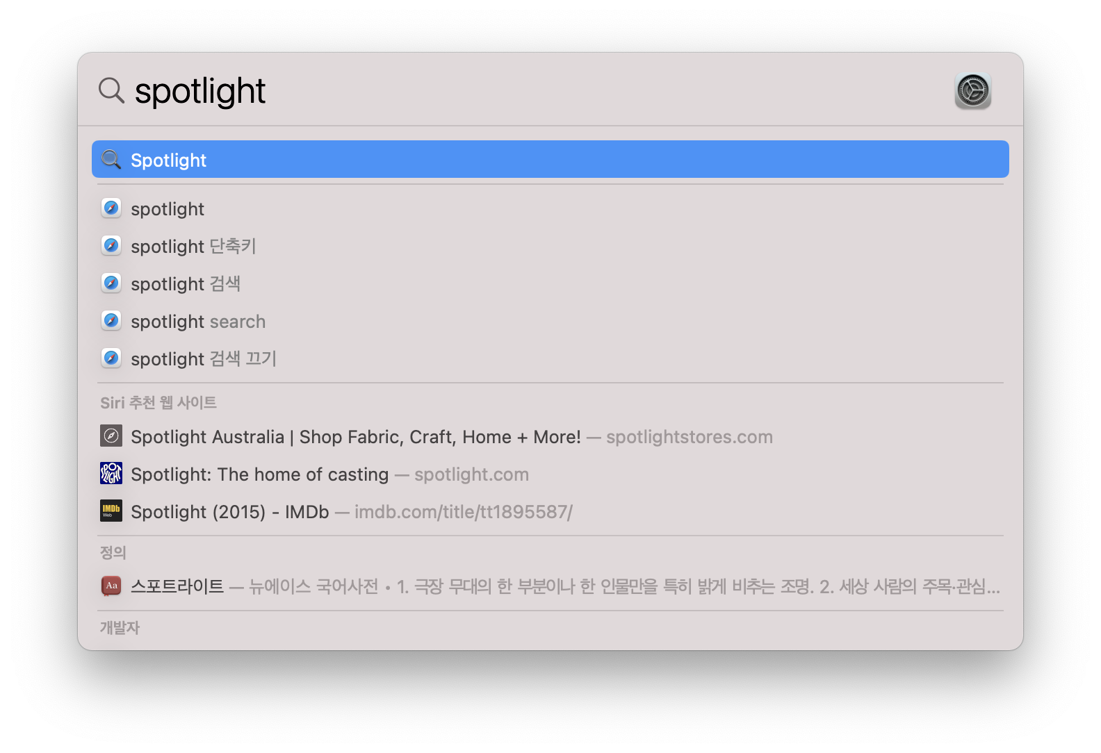 2. Spotlight를 검색하여 맨 위의 항목을 선택합니다.